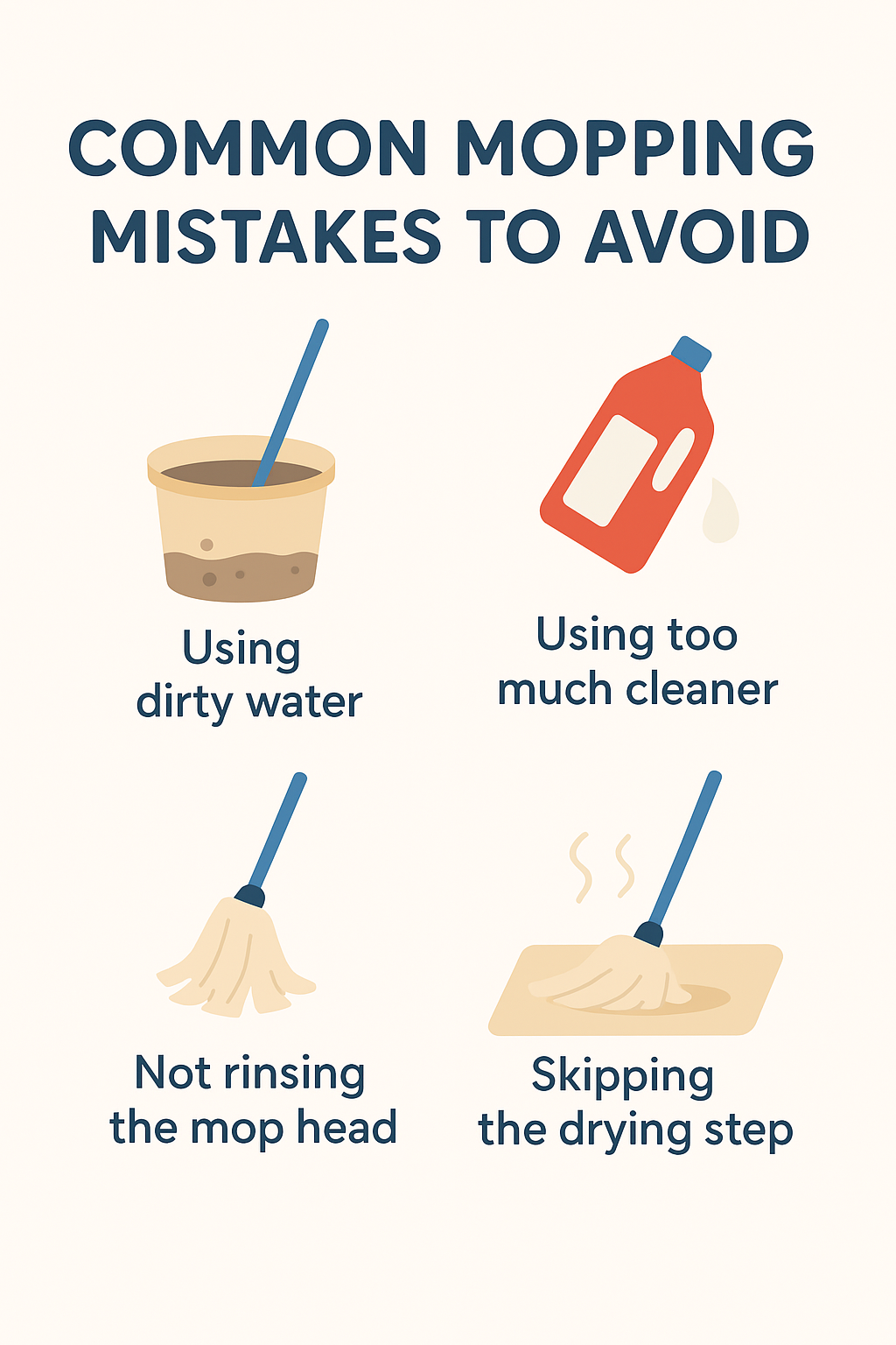 Even if you know how often to mop floors, certain mistakes during the process can undo your hard work. Here’s what you want to avoid: