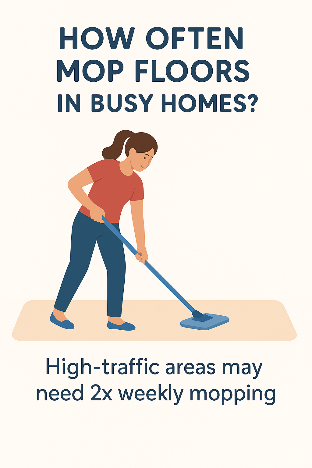 If your home is busy, floors work overtime 🚶♀️🐾. High-traffic spots like the kitchen, entryway, and mudroom may need mopping twice a week. That’s the only way to keep dirt and grime from building up.